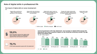 Digital literacy is no longer a competitive edge — it is a basic requirement. The data shows that Ukrainians with advanced digital skills earn, on average, five times more than those without. For 59% of respondents, these skills opened new career opportunities.