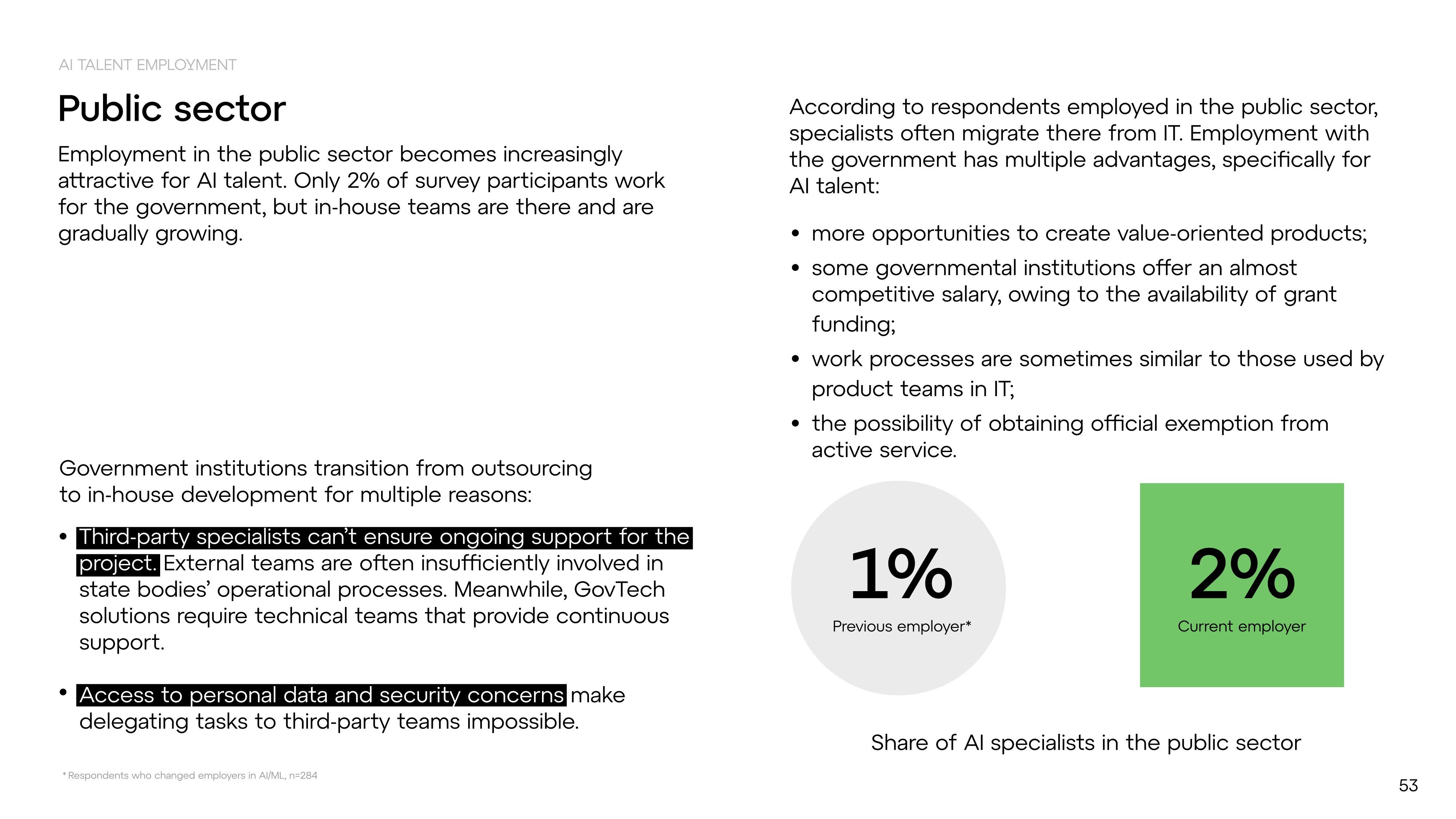 The public sector, while small (2%), is beginning to gain momentum. With the digitization of state services, Ukraine has launched its first product AI initiatives — including a national language model and new infrastructure to support public-facing AI tools.