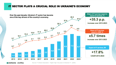 The share of IT in Ukraine’s GDP in 2022-2024 | Exports of Ukrainian IT services in 2022-2024 |