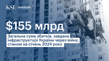 According to the Kyiv School of Economics (KSE), as of January 2024, russia inflicted direct infrastructure damage to Ukraine amounting to nearly $155 billion. The residential sector suffered the most significant losses: over 250,000 buildings were damaged or destroyed, including 222,000 private homes, more than 27,000 apartment buildings and 526 dormitories (Liga.net study). The direct damages from these destructions are estimated at $58.9 billion. As a result, over 6.5 million Ukrainians have become internally displaced persons.